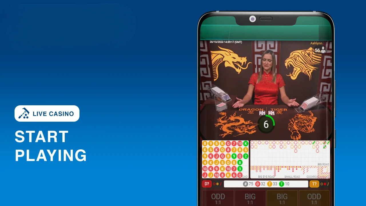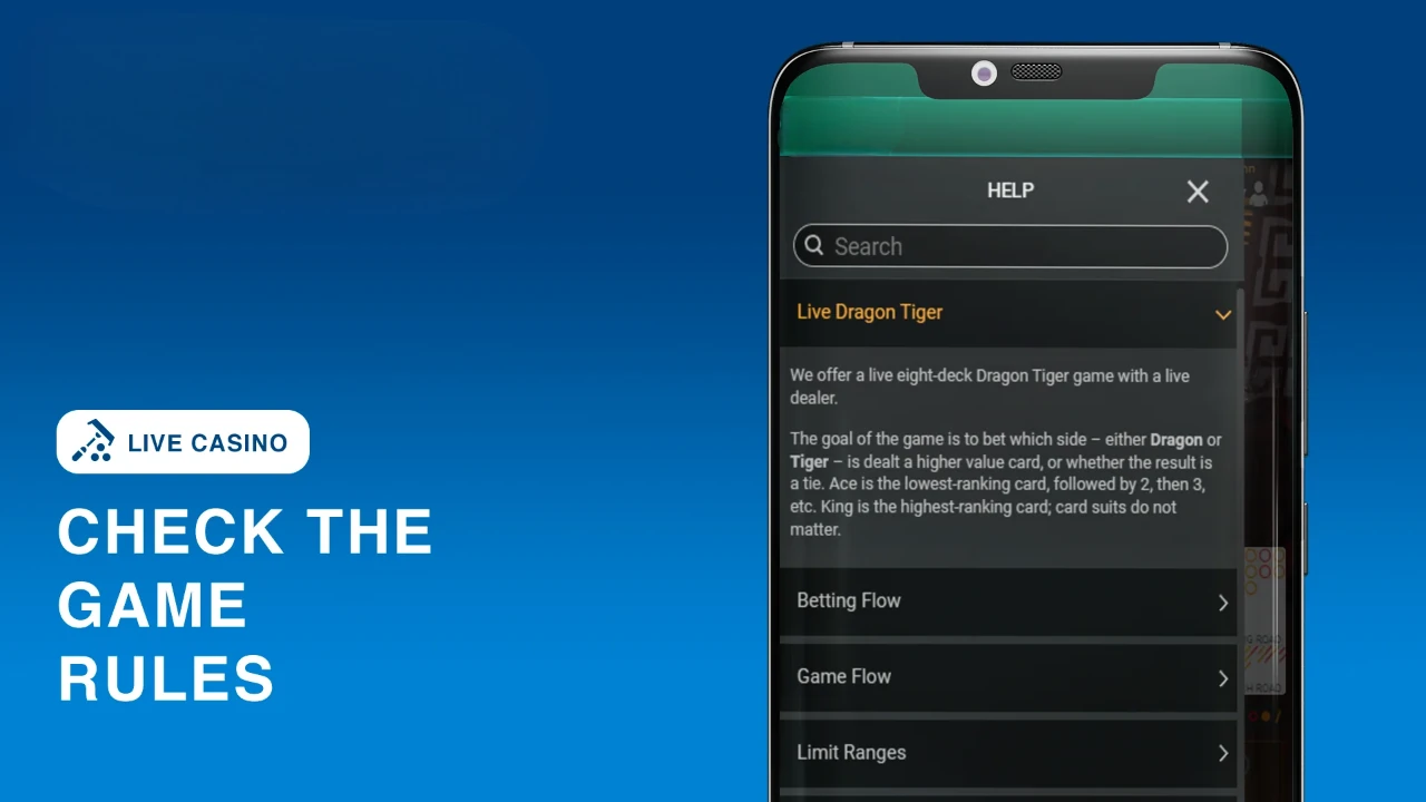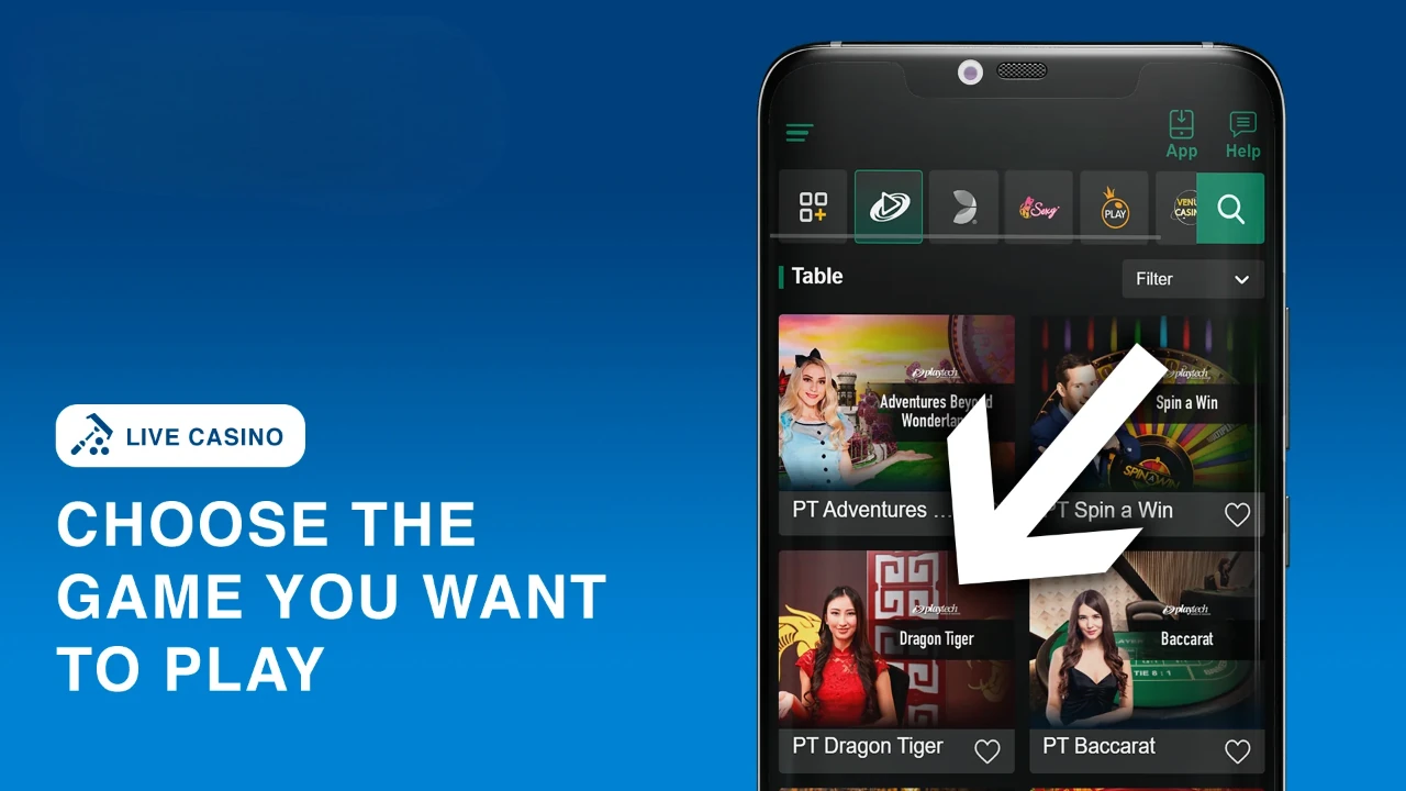 Choose the game you want to play, be it one of the card games or a live Dragon Tiger version.
